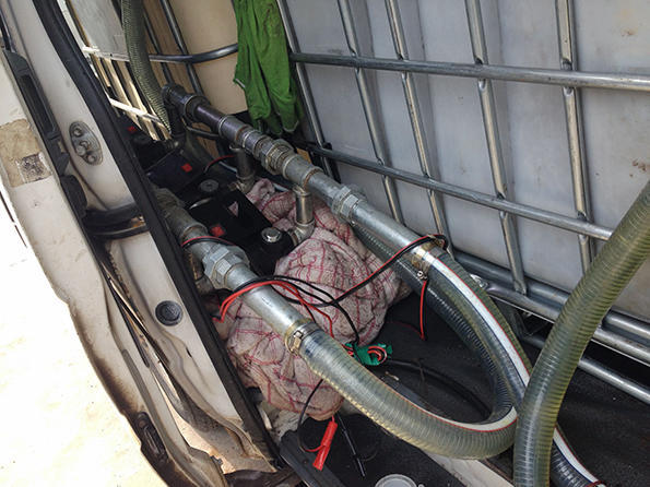 警方介绍,今年2月下旬, 犯罪嫌疑人韩某邀约徐某、葛某,谋划盗窃货车、工程车柴油,利用自有的一辆大型面包车,拆卸掉后排座位,并从武汉买来吸油泵、油管和能装1000多升的油桶,改装成用来盗窃的“油罐车”。