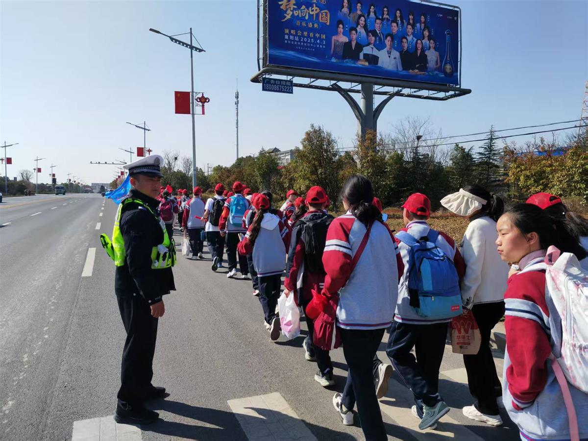 为确保远足活动的道路交通安全,枣阳市公安局交警大队吴店中队积极与学校对接,与学校负责人商讨制定了合理的出行方案,了解师生出行时间、学生人数及往返路线等情况,提前清理沿途路段的安全隐患,并安排警力在重点路口值勤,确保师生出行平安。