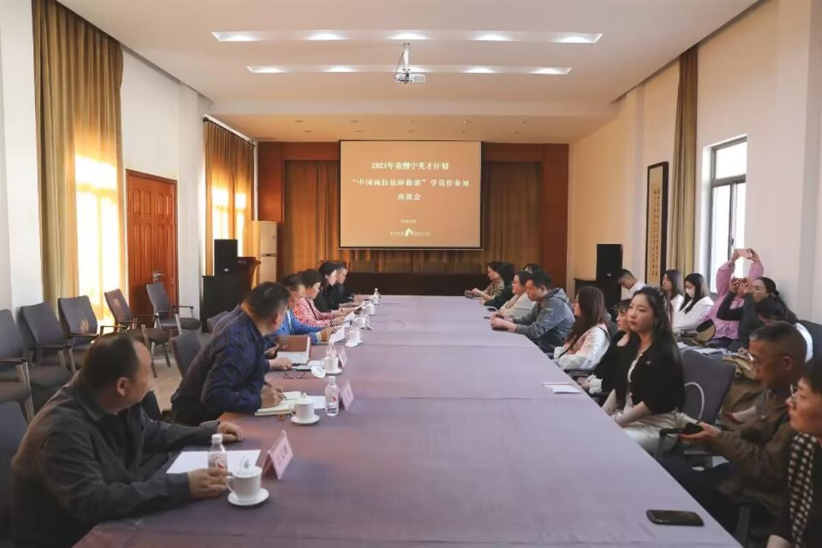 3月25日下午,中国画技法研修班学员作业展座谈研究会在董继宁美术馆召开。湖北科技学院、区委宣传部、区教育局、各中小学美术教师等26名学员参加。
