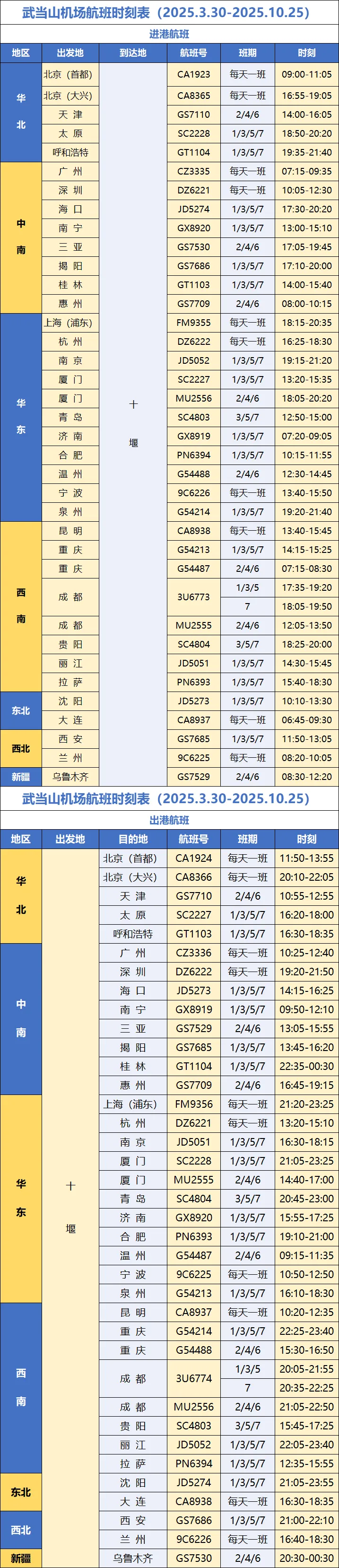 3月30日起,十堰武当山机场正式执行夏秋航季航班计划