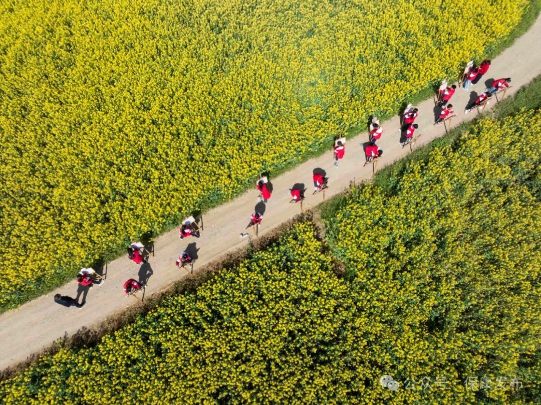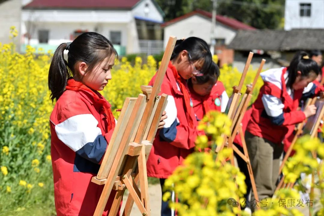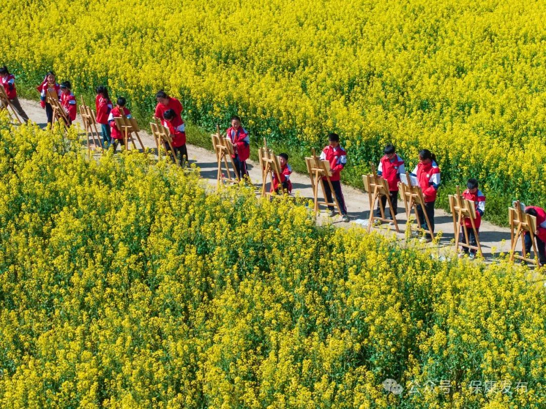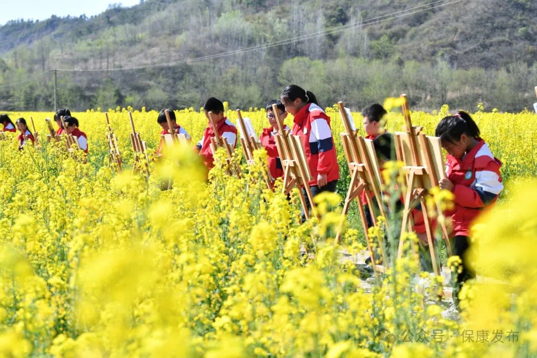 在油菜花海间,孩子们用画笔描绘心中的春天,收获满满的快乐。