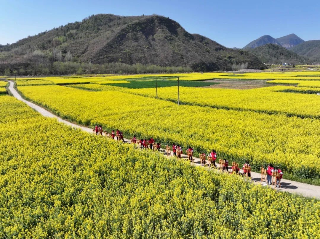 走进马良镇紫阳村,一片金黄的油菜花海映入眼帘。微风拂过,层层叠叠的花浪翻涌,散发出淡淡的花香,花海与周围的山峦和房屋相映成趣,构成了一幅浪漫的春日田园画卷。