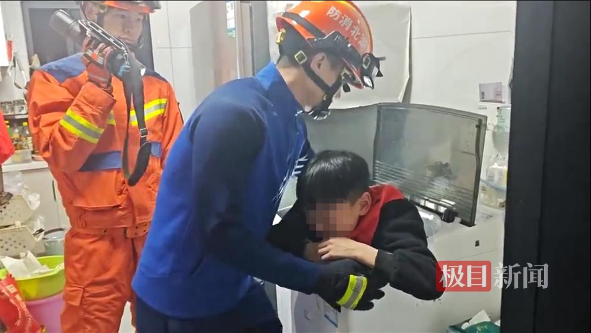 2025年3月21日晚,武汉市硚口区古田街道某小区内,一名5岁男童在邻居家玩耍时,不慎卡在一台洗衣机的滚筒内。消防员赶到现场时,发现男童双手正趴在波轮洗衣机的操作板上,仅有头部和手部露在洗衣机外,男童的腿部及脚部呈弯曲状态卡在洗衣机的滚筒内。消防员先将洗衣机抬至客厅宽阔位置平放,并找来靠枕垫在男童身下,随后,消防员小心翼翼地将手伸进滚筒与男童身体处狭小的缝隙内,用手将男童的鞋子与衣物脱下,待活动空间打开后,男童顺利脱困。