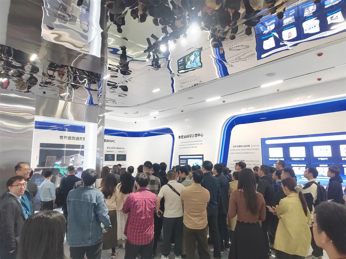 会议伊始,与会嘉宾实地参观了孝感3D科学计算中心,重点了解MHPC512超算系统的创新应用。该中心以科学计算与工程仿真为核心架构,构建了覆盖高性能计算、实验测试、人工智能及大数据分析的综合性技术平台。思朗科技董事长查浩在技术讲解中提到,MHPC512不仅支持药物靶点发现、分子对接等生物医药关键环节,还可为新材料研发、高端装备设计提供高效算力支撑。