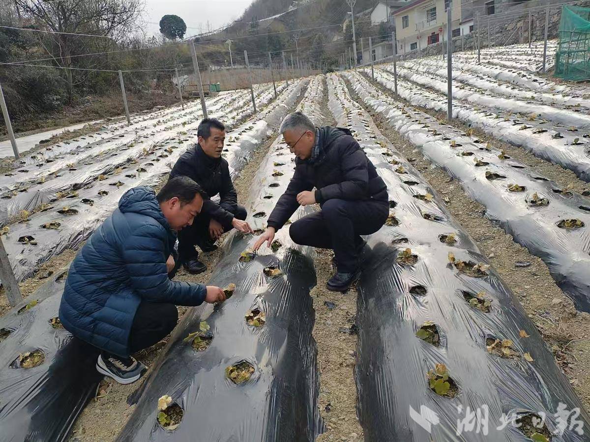 农技专家正在查看淫羊藿长势。(湖北日报通讯员龙萱摄)