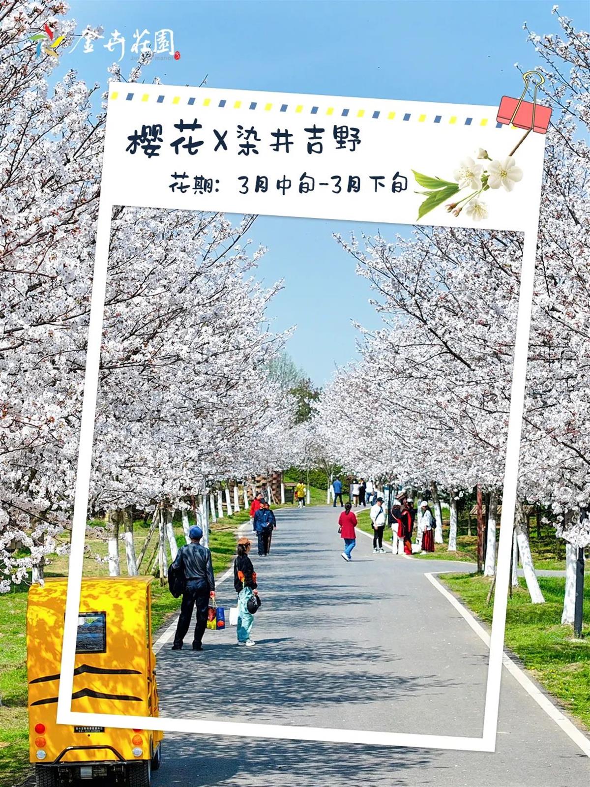樱花花期很短暂,一朵樱花从开放到凋谢大约为7—10天 。樱花花语为:生命、幸福一生一世永不放弃、一生一世只爱你、命运的法则就是循环。金卉庄园的樱花大道最为壮观、浪漫,快来感受独属于樱花的浪漫吧!