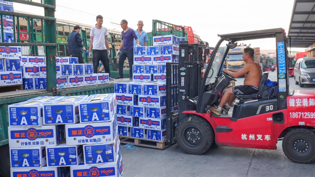 “我们日保底销售在1000件以上,主要以老挝、越南、缅甸、菲律宾、柬埔寨的进口蕉为主。”专做香蕉批发的一代天蕉销售经理黄文志说,相比其他水果,香蕉单价较低,且耐储存,适合大批量采购,吸引零售商加大备货。