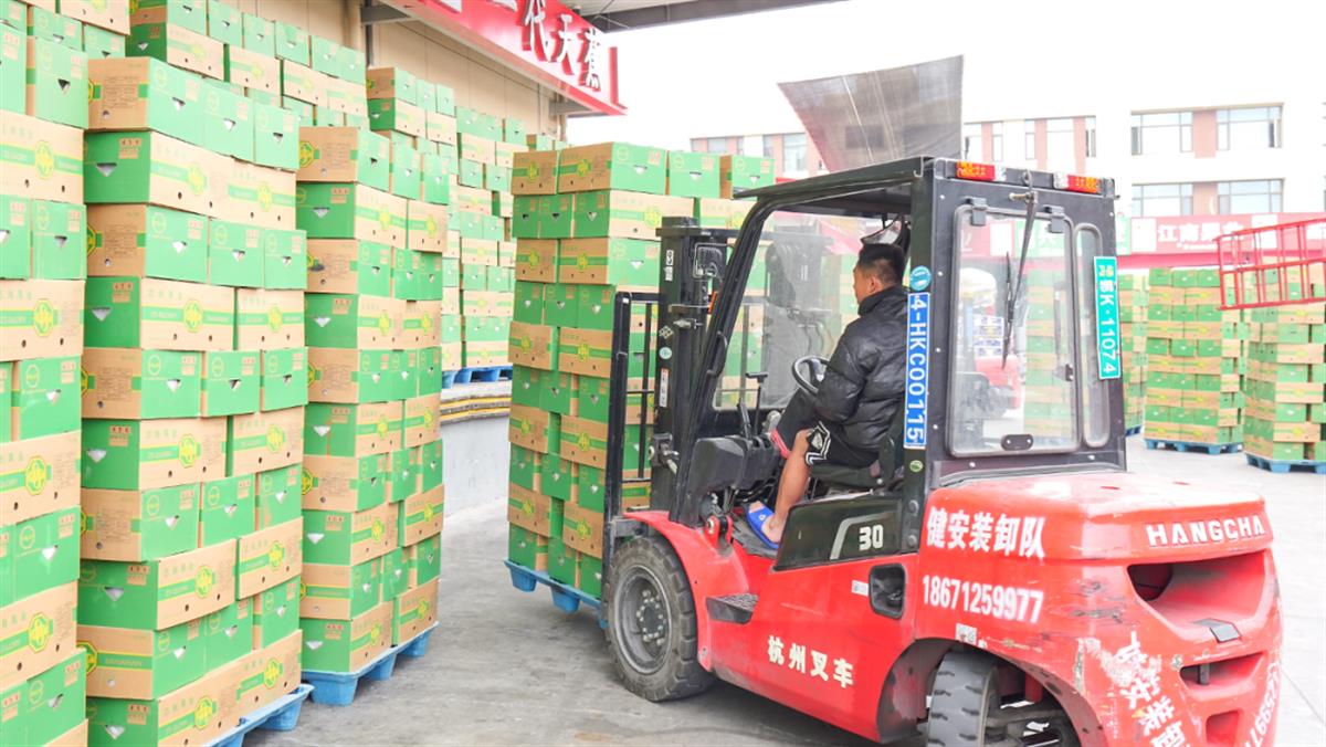 “平均两三天进场一挂车2400多件,销售渠道比较多元化,有传统批发、商超、生鲜店,还有社区团购、电商平台直达消费者。”