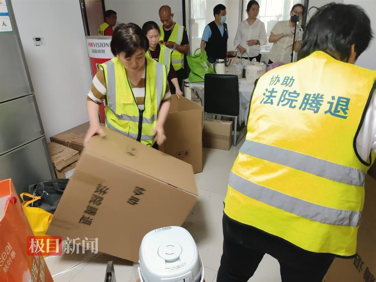 3月26日下午2时30分,武昌区法院出动12名干警对胡军非法强占的法拍房进行强制腾退。在现场,新闻记者看到,为了充分保护被执行人的合法权益,武昌区法院执行局联系了武汉市黄鹤公证处的2名公证员对屋内被执行人的财物进行公证。