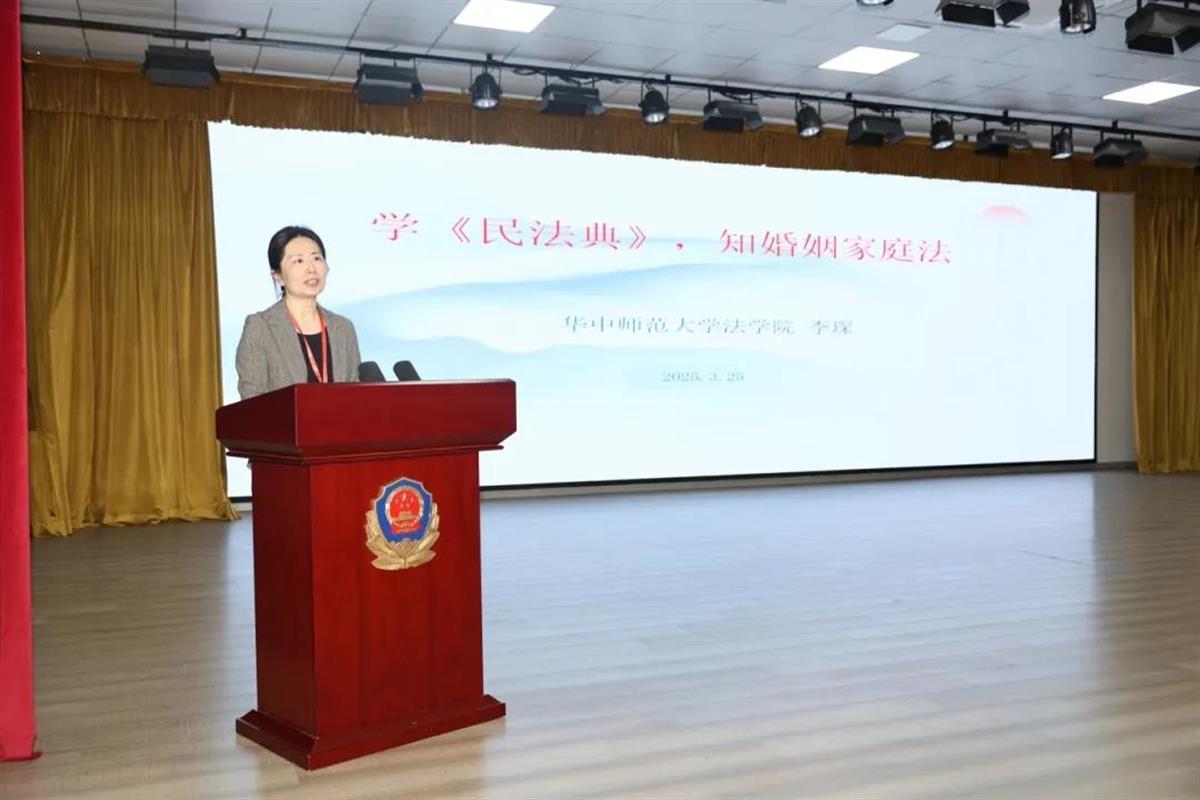 随后,教学楼内开展了“法律进高墙”专题辅导讲座。华中师范大学法学院副教授李琛围绕《中华人民共和国民法典》婚姻家庭法进行授课,她结合典型案例,给服刑人员详细讲解婚姻关系、子女抚养权、财产分割等法律知识。