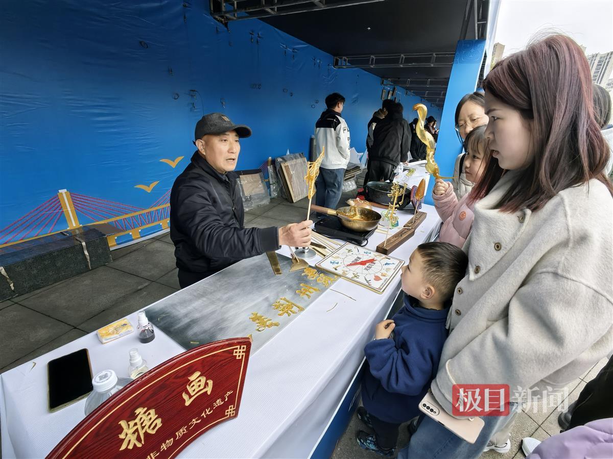 荆州磨鹰风筝制作技艺、吹糖人制作技艺、荆楚粉画、葫芦器制作技艺、荆州泥塑、楚式漆器髹饰技艺、楚简制作技艺、帛画……新闻记者在博览会出口的非遗展区看到,非遗项目一一呈现,让选手和市民近距离感受传统民间艺术及非遗文化的独特魅力。