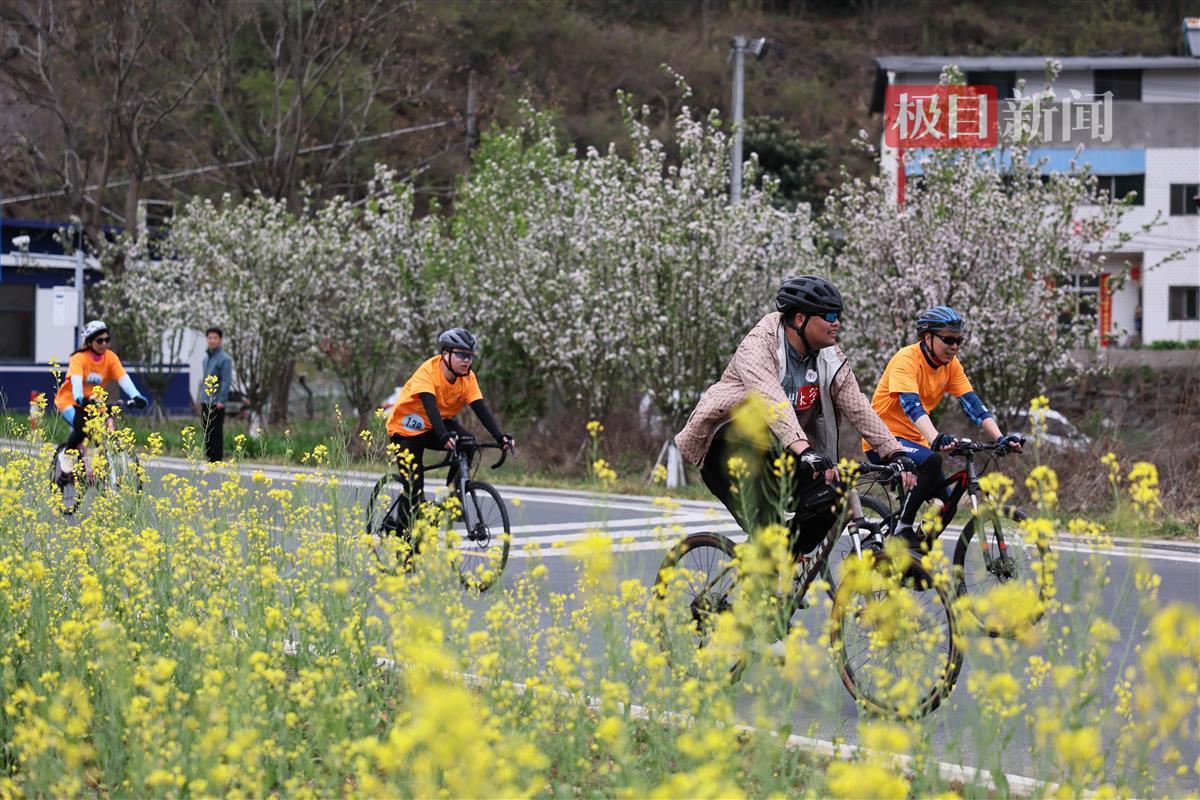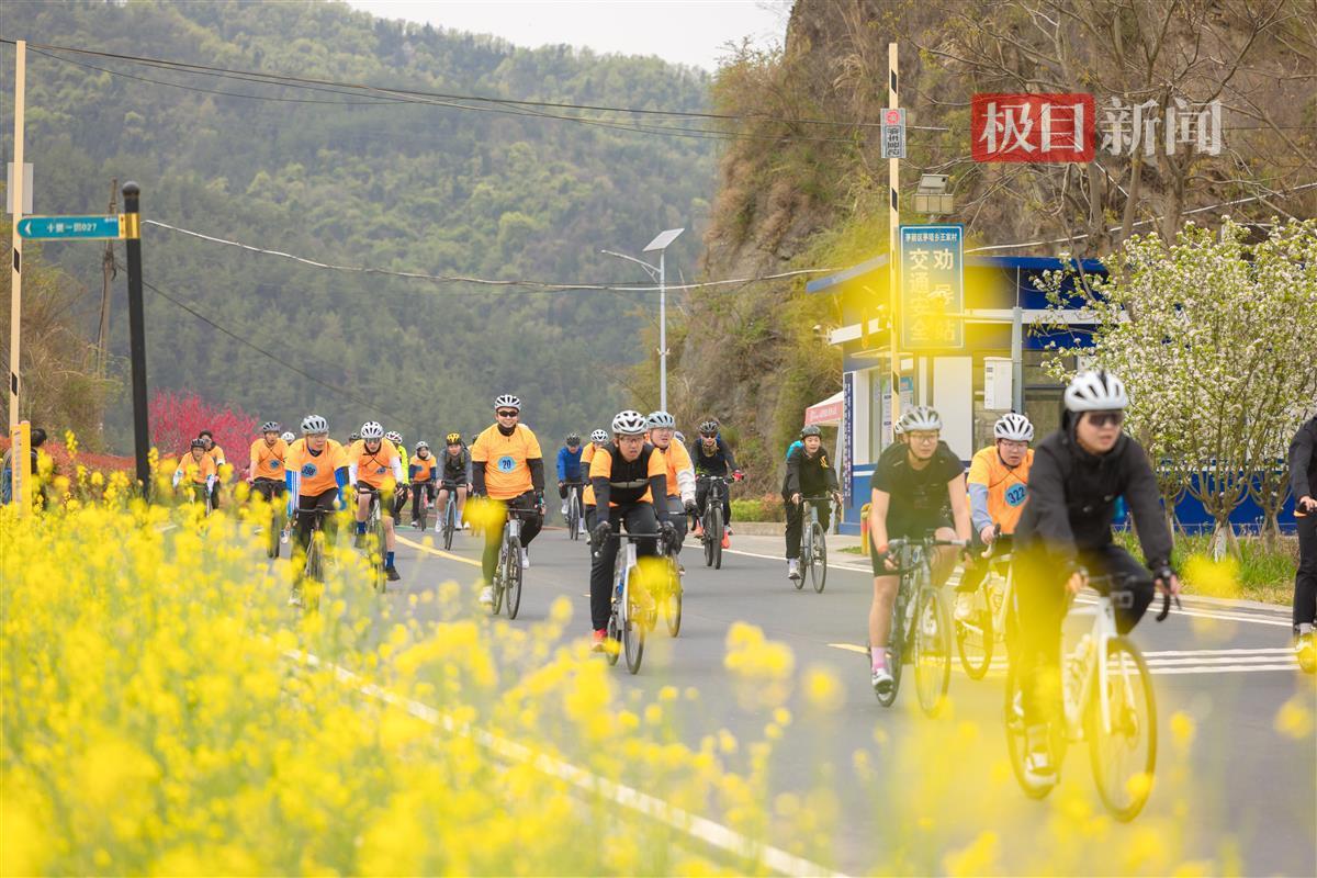来自全国各地的骑行爱好者穿梭于层叠花海与秀丽山水间,绘就一幅“车在景中行,人在画中游”的春日盛景。