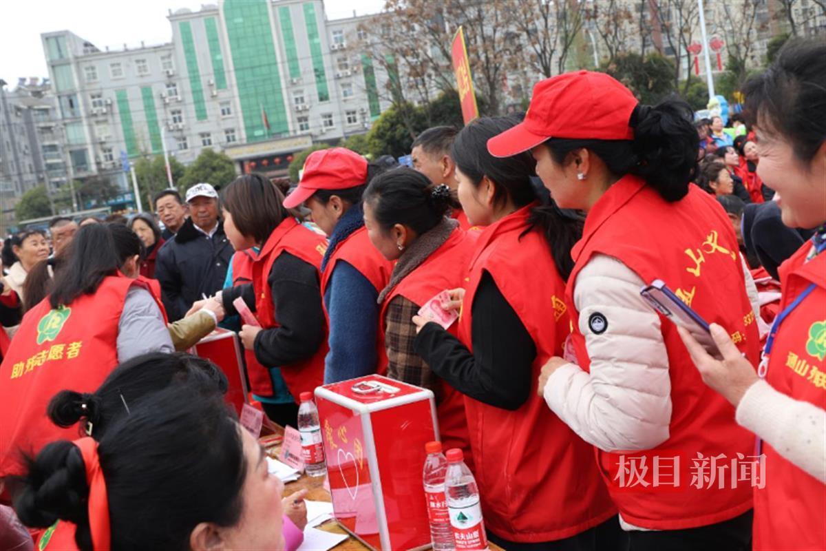 3月30日,在通山县人民广场募捐现场,一些社会爱心人士和社会团体争相捐款。据了解,爱心志愿者协会共19个团队472人参加了义演并捐款33,983元。县残联、县人大、县妇联、团县委、县教育局、县文旅局等16家单位共捐款19,260元。社会爱心人士捐款共计14,668元。
