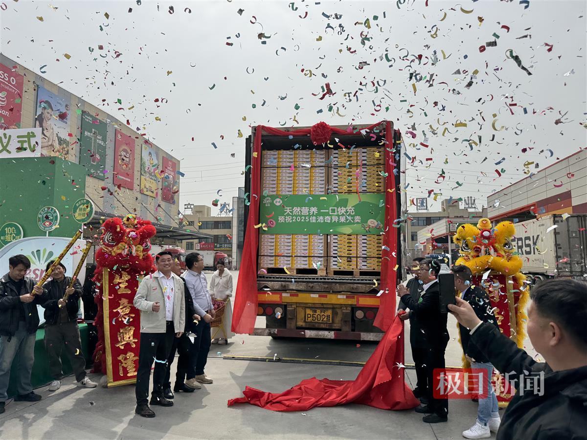 3月31日,2025年佳沛奇异果开季上市活动在孝感首衡城举行,来自新西兰的奇异果现场开柜,即将走进市民家中。