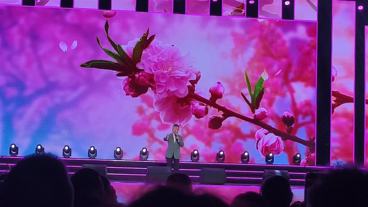 下篇《茶韵新程》依托著名歌唱家蒋大为演唱的三首歌曲,展现宣恩依托贡茶产业振兴乡村的新图景。78岁高龄的蒋大为一登台,便赢得掌声、欢呼声一片。他带领观众演唱了经典曲目《在那桃花盛开的地方》,又清唱了他三十年前写的《请喝一杯宣恩茶》,将经典曲目唱出了新韵味。蒋大为感慨,和30多年前来这里相比,宣恩发生了翻天覆地的变化,甚至可以用“神话”来形容。演出的最后,一首耳熟能详的《敢问路在何方》为宣恩高质量发展奏响了新的乐章,亦将本场晚会推向了最高潮。