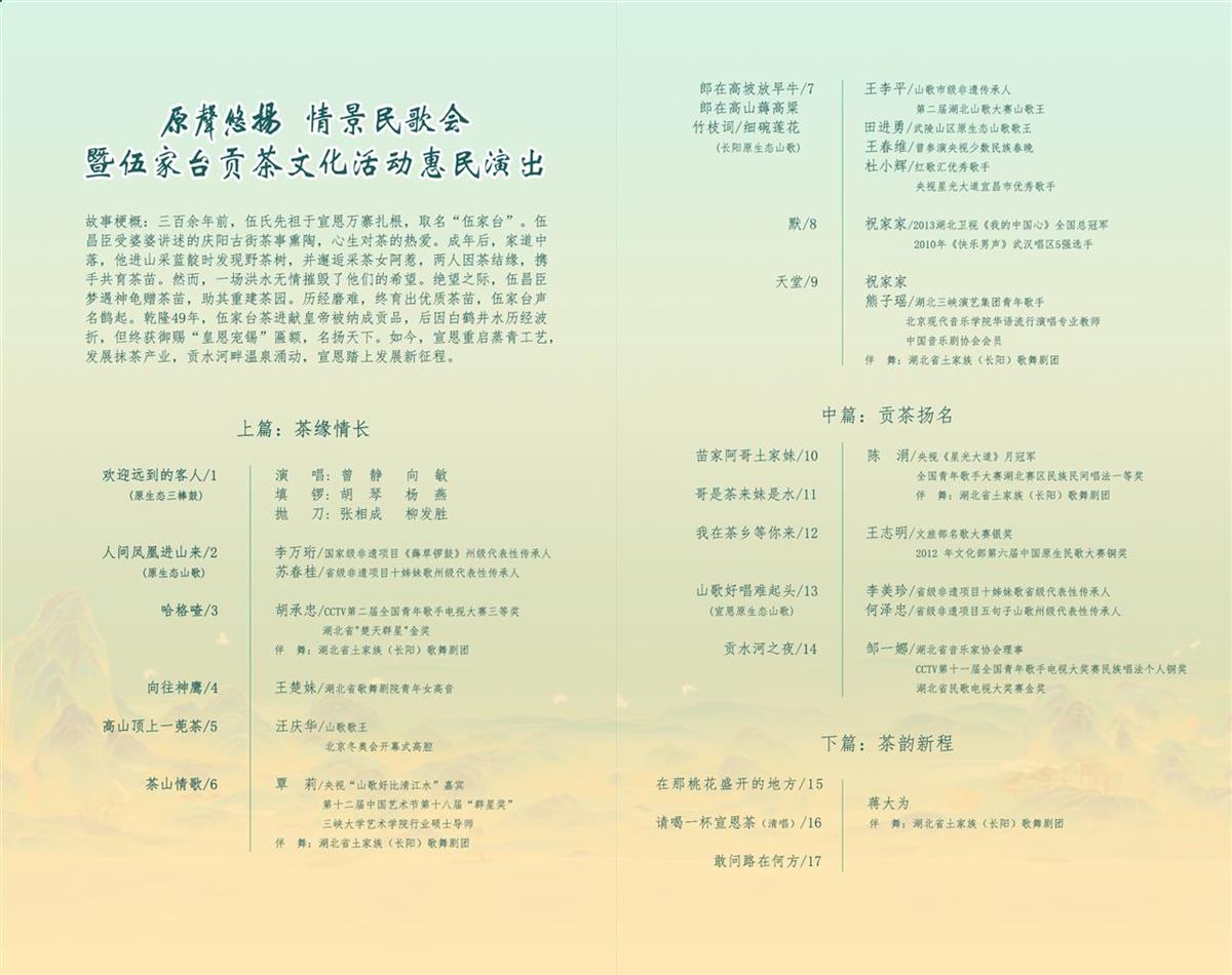 演出分为上、中、下三篇,以伍家台贡茶的发展为主线,串联起宣恩三百余年的发展脉络。