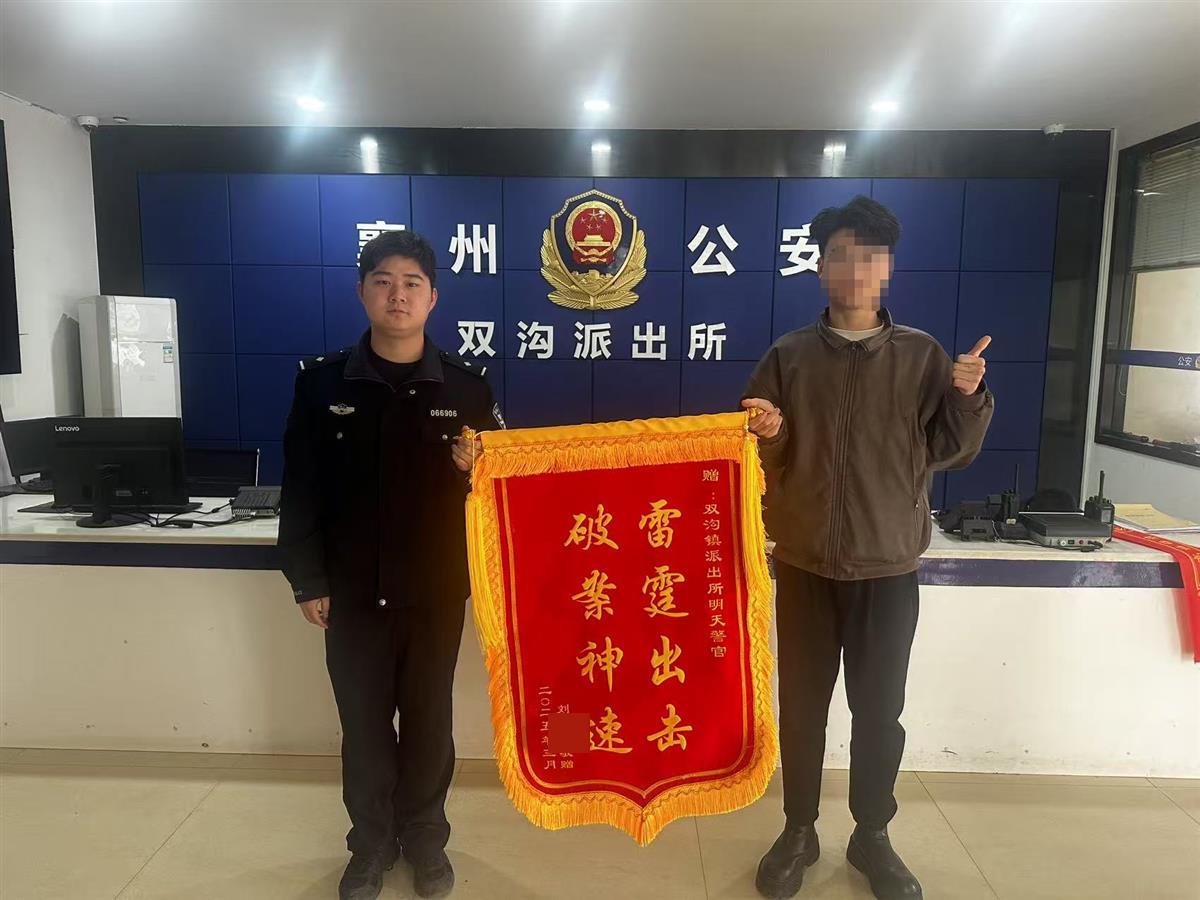 “谢谢你们,帮我追回了2万余元的被骗款……”3月29日上午,市民刘先生赶到湖北襄阳市襄州区公安局双沟派出所,将一面写有“雷霆出击 破案神速”的锦旗送到民警手中,向帮助他追回被骗款的民警表达感谢。
