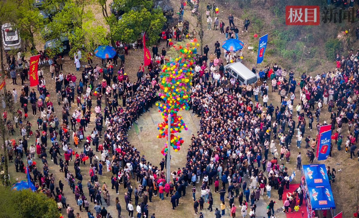 11时左右,最让人期待的抢彩球祈福活动开始了。挂满红、黄、绿、蓝四色彩球的毛竹吸引人群,红球寓意得子,黄球旺财,绿球生女,蓝球保平安。现场人群提前占位,翘首以盼,随着毛竹倒下,大家纷纷伸手去抢,场面十分热闹。
