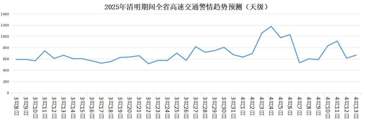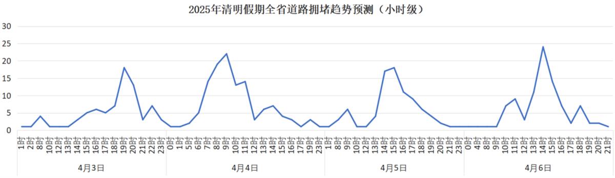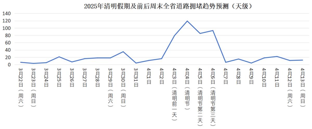 预计今年清明假期拥堵时段集中在每日7时至10时、13时至16时。