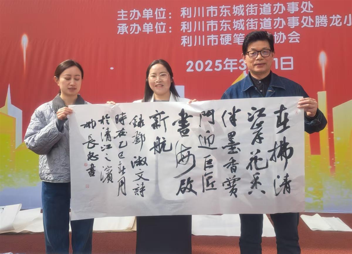 春风拂面,阳光暖人。3月31日,利川市东城区腾龙小学沉浸在一片翰墨飘香的诗意氛围中。一场由利川市硬笔书法家协会、利川市东城区街道办事处等联合举办的“书画点亮腾龙校园,墨韵滋养童真心灵”书画名家进校园活动在此举行。