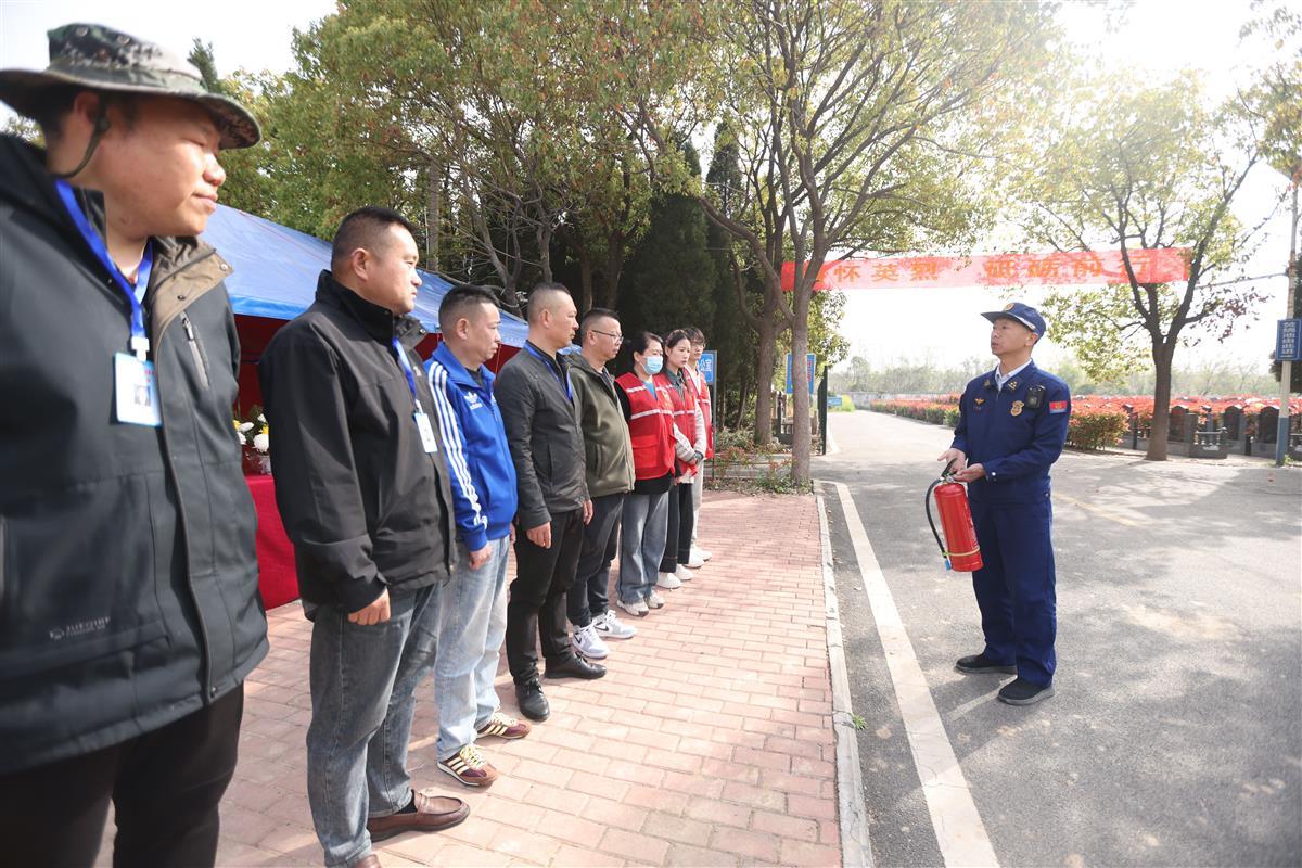 消防宣传员联合园区工作人员在公墓入口处设立文明祭祀置换点,倡导绿色文明祭扫