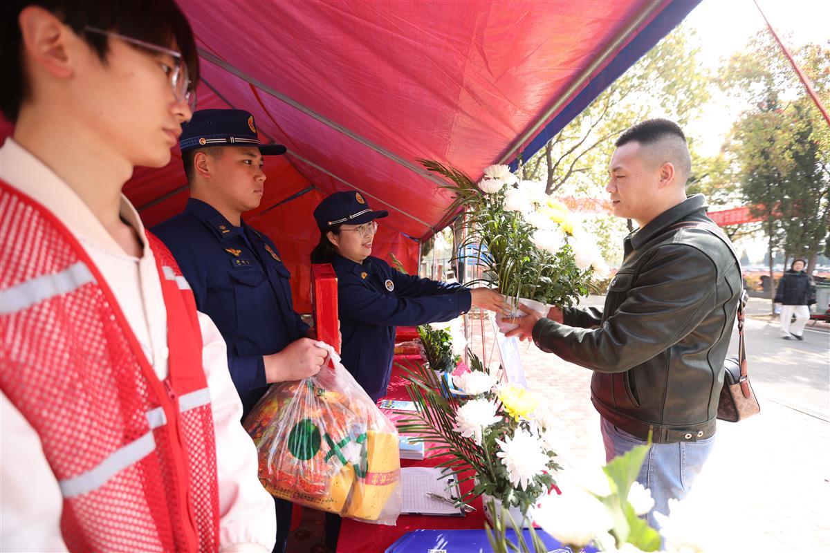 “阿姨,用您带的纸钱换束鲜花吧?既环保又安全。”在公墓入口处,消防宣传员联合园区工作人员设立了文明祭祀置换点,不少市民主动用携带的鞭炮、纸钱兑换鲜花、黄丝带等环保祭祀物品。