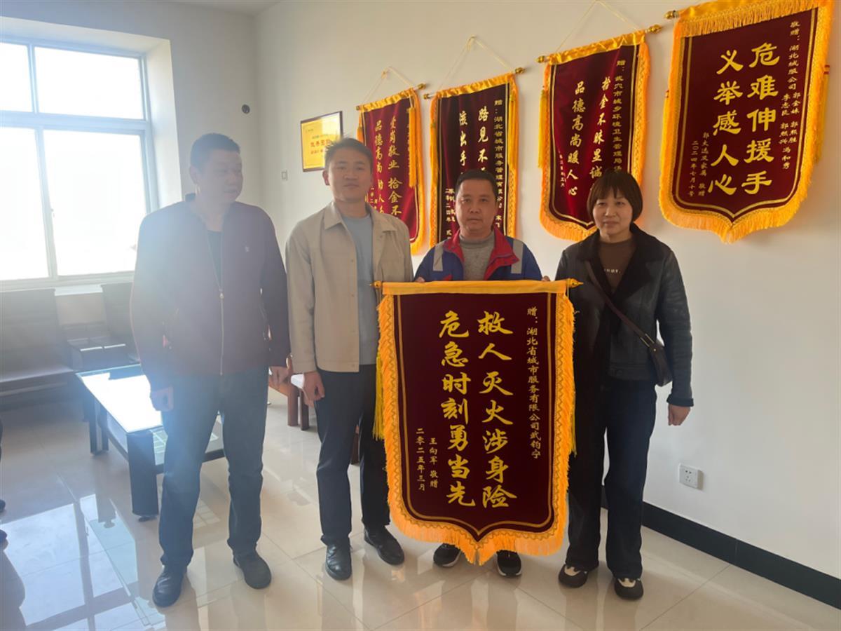 “真的是太感谢武师傅了,他面对火情危险敢于见义勇为,如今我们一家人才能安全地站在这里。”近日,武穴市民王先生将一面锦旗送到了联投城市运营公司旗下城服公司办公楼。他紧紧握住环卫车司机武钧宁的手,激动不已。对于王先生来说,武钧宁的义举救了他们一家人。