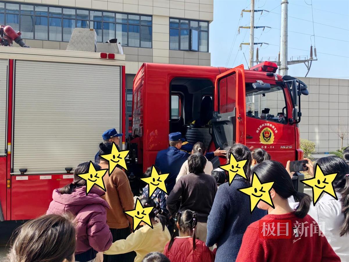 在消防员的引导下,孩子们好奇地围着消防车,摸摸消防水带,看看消防头盔,眼睛里满是兴奋的光芒。消防宣传员耐心地为孩子们介绍各种消防器材的功能,还现场演示了快速穿消防服,赢得了阵阵掌声。