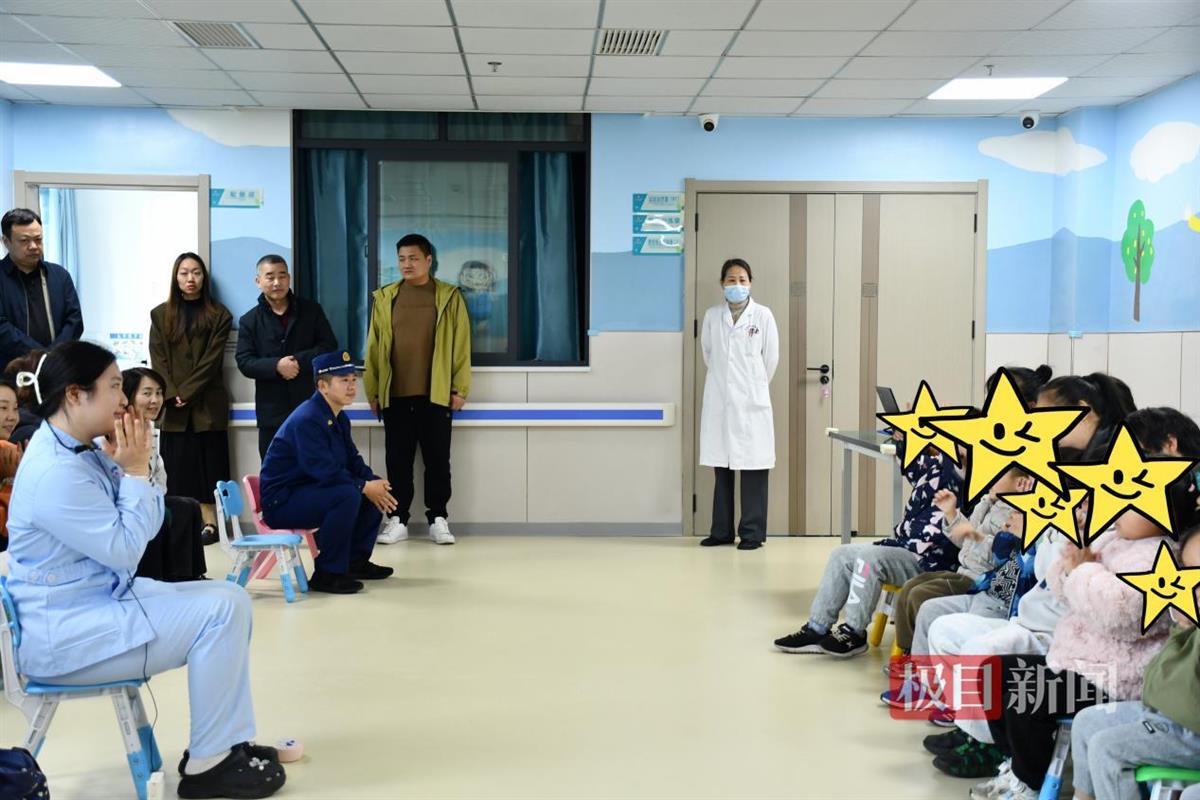 随后,消防车开进妇幼保健院一楼后院,让孩子们近距离感受“火焰蓝”魅力。停在院内的消防车立刻成了最受欢迎的“大明星”。