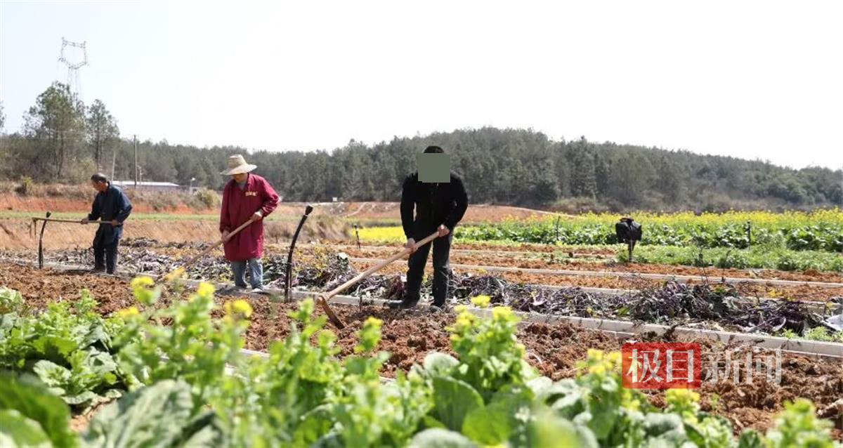 农场的田地里,50岁的周斌在地里挥舞着锄头,翻动着泥土,额头满是汗水。和他一起干活的,还有两位村民。从这三个人的穿着和干活的姿势上,你绝对无法看出周斌就是这个农场的老板。