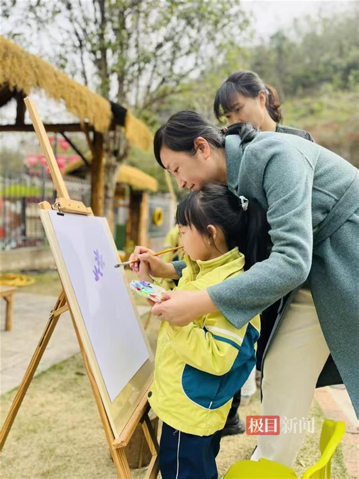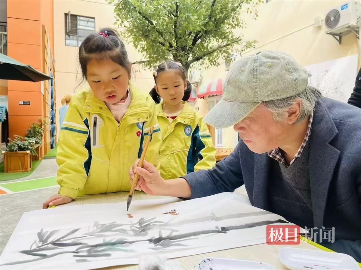 活动现场,来自伍家岗区美术家协会的艺术家与三峡大学艺术学院的师生们分为多组,带领孩子们体验不同艺术形式的魅力。户外场地上,油画家以校园景观为素材挥毫泼彩,国画艺术家则提笔勾勒花木竹石,引得孩子们驻足围观,惊叹于水墨丹青的灵动与油彩的浓郁。室内创作区,艺术家们以童趣为主题进行水墨示范,用简笔勾勒出憨态可掬的小鸟,激发孩子们的创作热情。