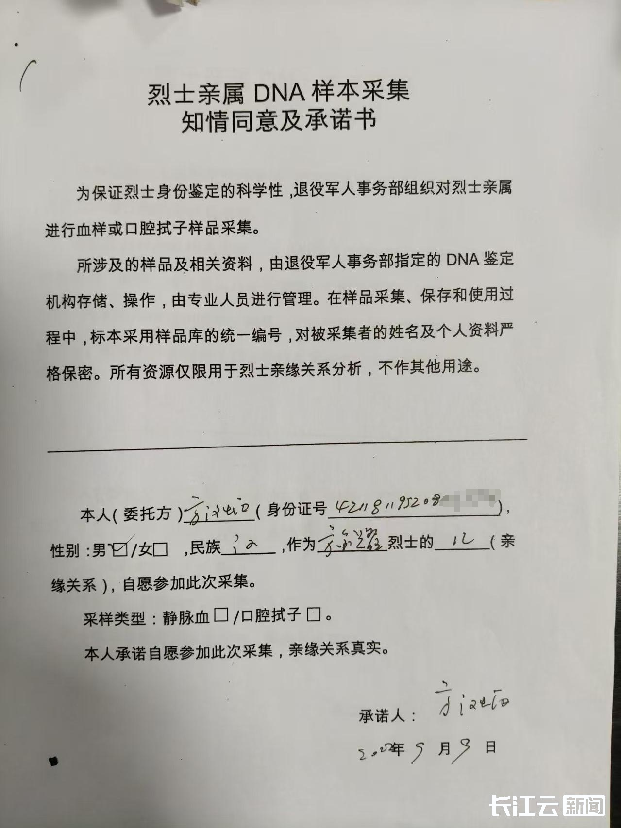 方汉炳参加烈士亲属DNA样本采集同意书