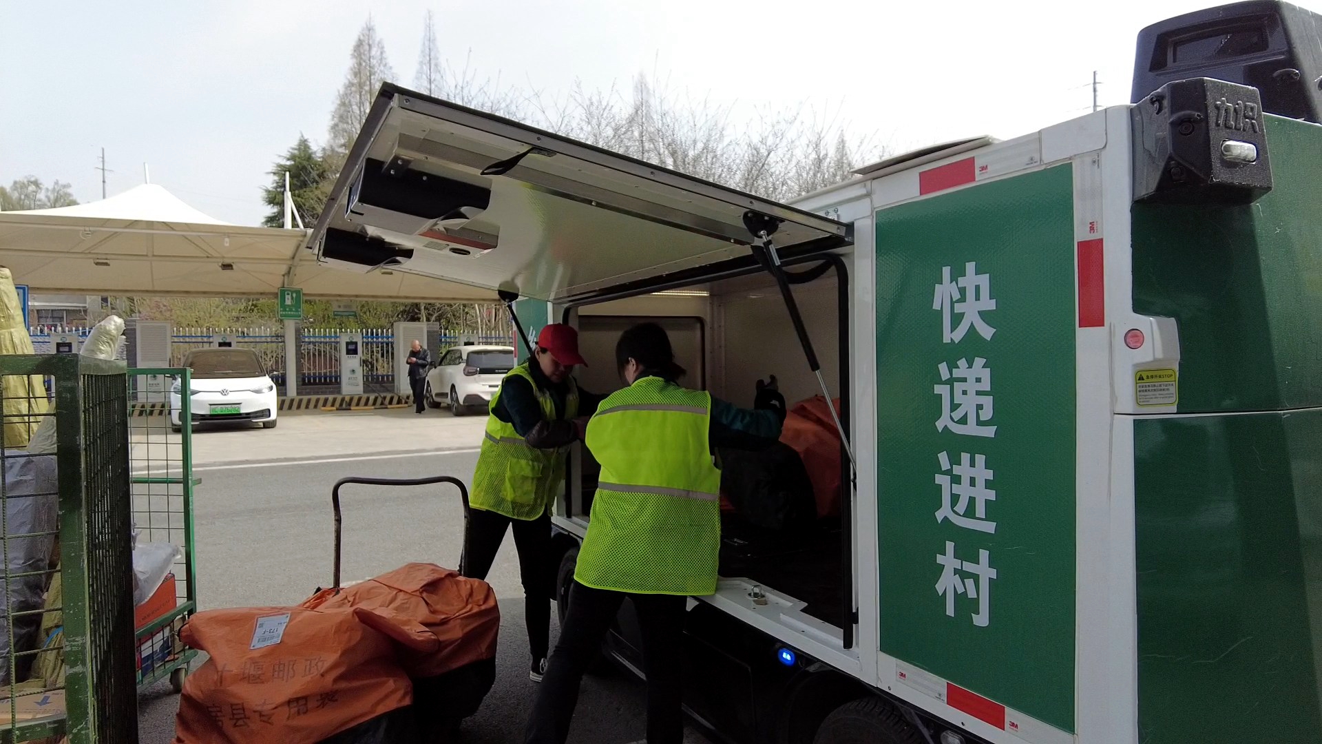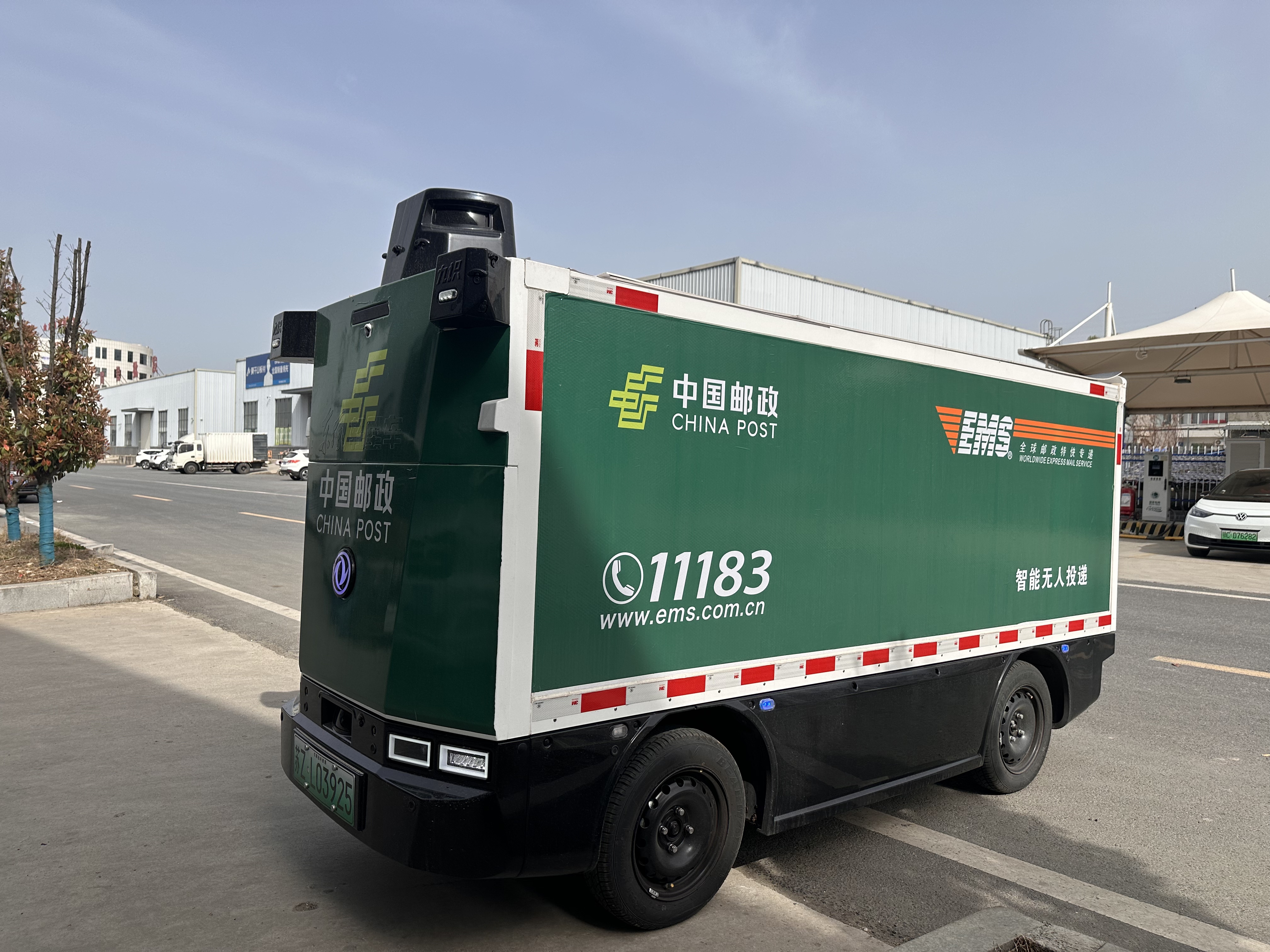 中国邮政房县寄递共配中心负责人杨鑫说:“我们的车辆搭载L4级自动驾驶系统通过顶部和四周分布的11个摄像头及3个雷达实现360度无死角环境感知,同时配备紧急制动、远程监控和语音提示功能,行驶中可主动礼让行人、避让路障确保安全性与稳定性。”