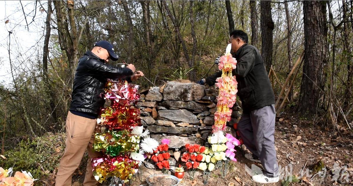 “‘叶司号员’,清明节到了,我们来给你插青。”4月2日一大早,保康县城关镇堰塘村的邓发成带领儿子邓正佳和邓正海,给离家不远处的“叶司号员”扫墓。从战争年代到和平岁月,一家四代人只为一句承诺,接力守护红军墓长达94年。
