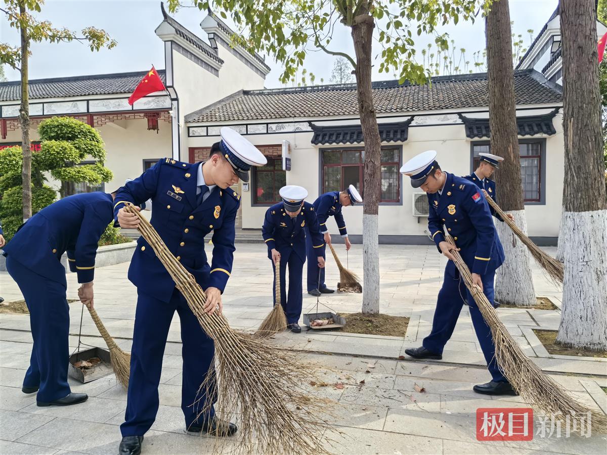 接着,大家拿起扫帚、抹布等工具,清理烈士陵园的枯枝树叶,擦拭烈士的墓碑,以此表达对革命先烈的敬意。