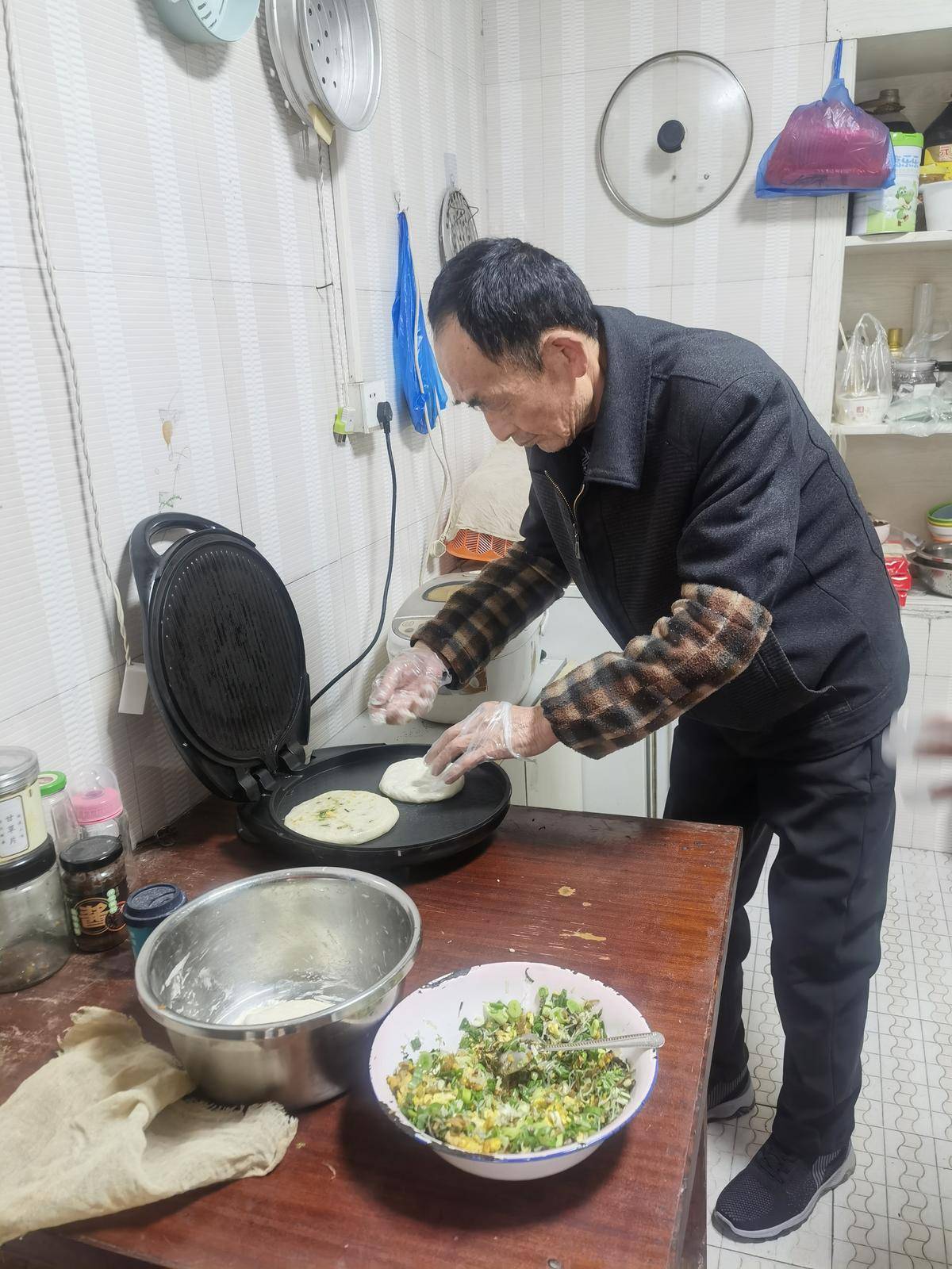 出发前,方汉炳做了父亲最爱吃的火烧粑。(湖北日报全媒记者 王婧 摄)