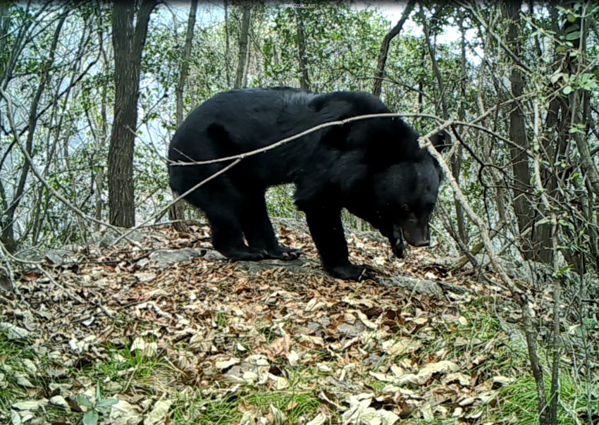 从“零记录”到“多点现身”。据保护区科研监测负责人介绍,本次回收的红外相机中,有2台在不同海拔和植被类型的监测点捕捉到亚洲黑熊影像。画面显示,一只成年亚洲黑熊在白天翻动石块觅食,另一段视频则记录到小熊穿越林地的场景。这些影像经动物学专家鉴定,确认为五道峡保护区自成立以来首次获得的亚洲黑熊野外活动证据。
