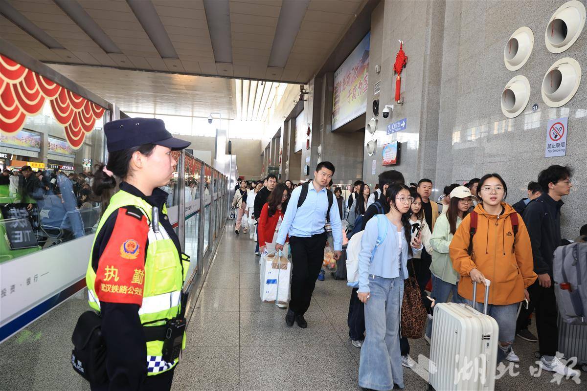 湖北日报讯(通讯员胡金力、陈诚、刘子悦)4月6日,武昌火车站迎来清明小长假返程高峰,发送旅客(到达)10万人次。武汉铁路部门精心组织清明假期运输,挖掘运输潜力,落实便民利民惠民服务举措,全力保障旅客平安有序温馨出行。