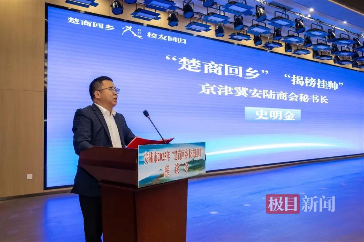 座谈会上,安陆市委常委、统战部部长时运泰作招商推介,京津冀安陆商会秘书长史明金、上海孝感商会安陆分会会长何大庆等异地商会代表就推进“楚商回乡”“揭榜挂帅”作了交流发言。