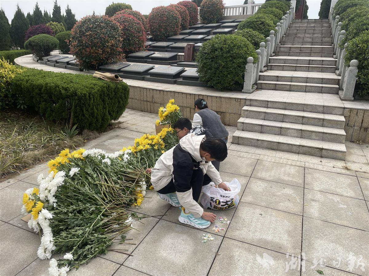 杨晶晶是孝感人,丈夫来自湖南岳阳。2021年因工作调动,全家迁居咸宁。谈起为何坚持祭扫,杨晶晶说:“2023年,我带儿子看完《长津湖之水门桥》,电影结尾,整个连队几乎全部牺牲,点名时只有一人应答……革命先烈用生命换来今天的和平,我总要做点什么,让儿子明白幸福从何而来。”