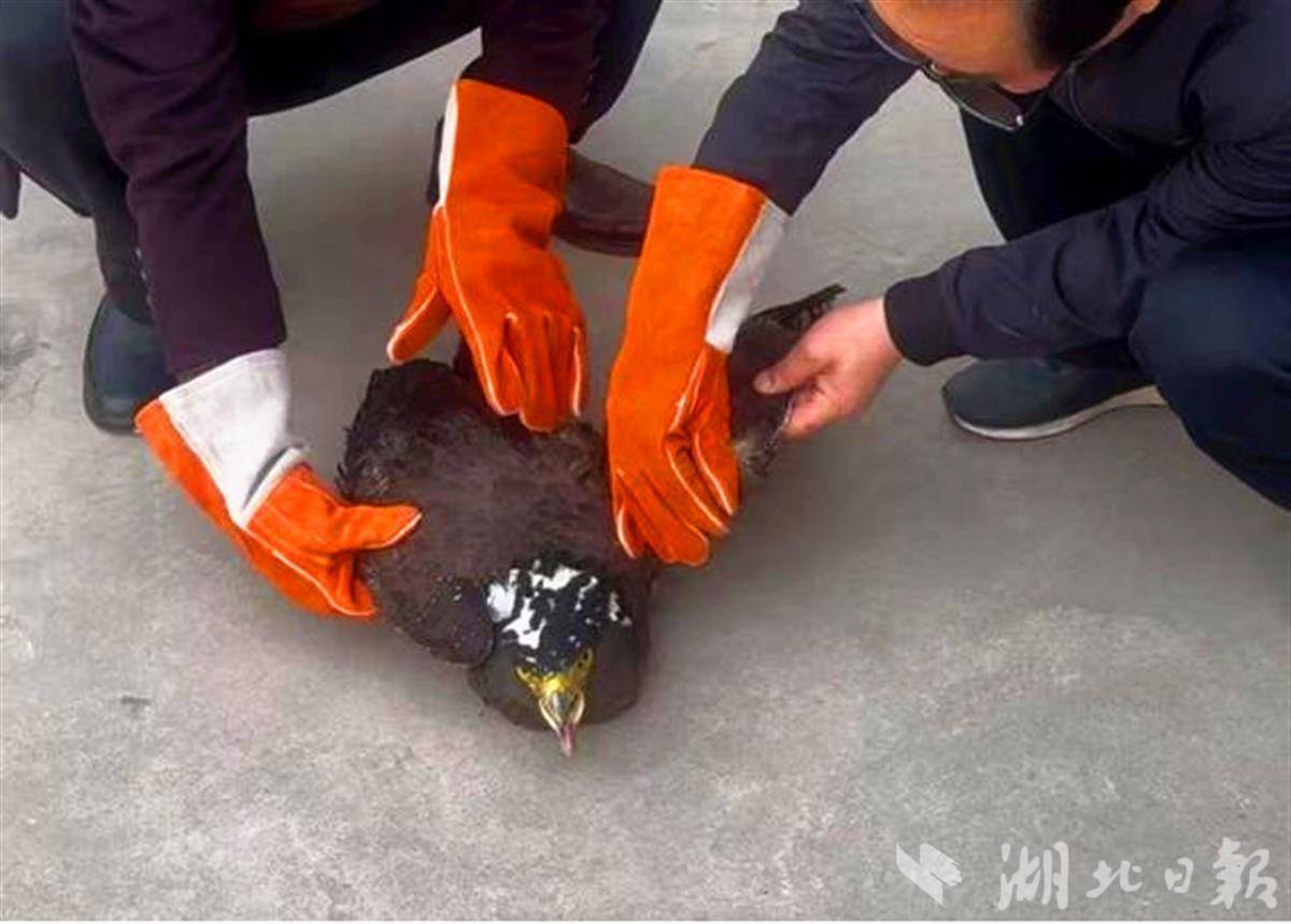 4月2日下午,远安县洋坪镇武陵峡景区工作人员在巡查时发现一只无法飞行的蛇雕(国家二级保护动物),立即联系县野生动植物保护站并实施临时保护。野保站人员到场后检查发现,蛇雕虽无外伤,但因体力衰弱丧失飞行能力。工作人员为其提供饮水与食物补给,并安装红外相机实时监测健康状况,待其体能恢复后择机放飞。