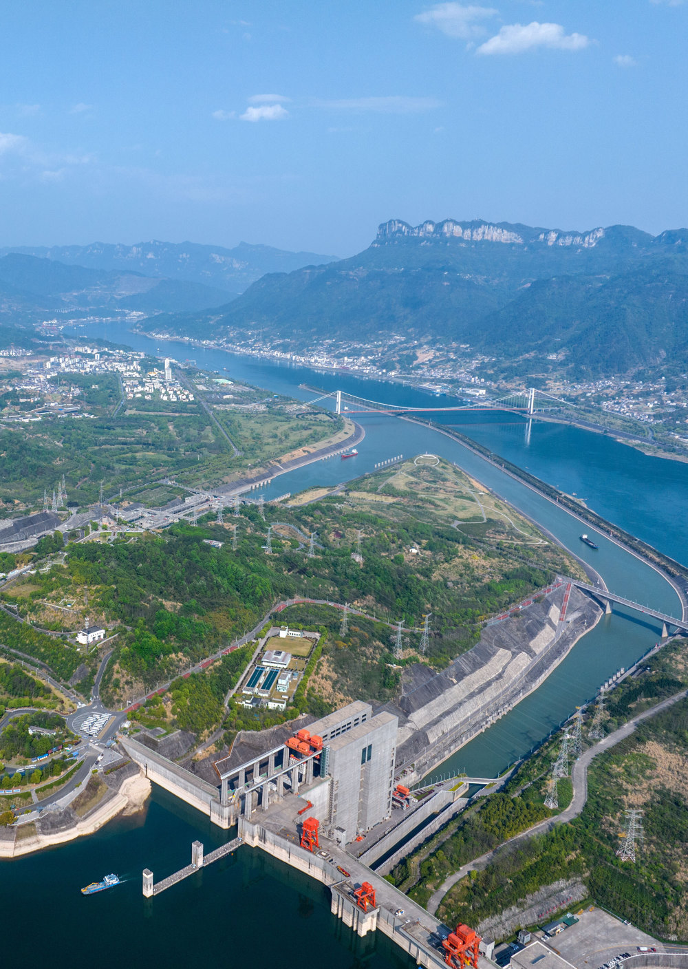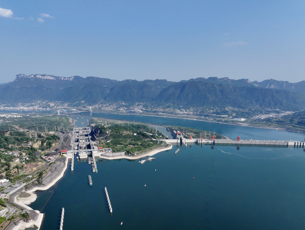 4月8日,在湖北省宜昌市,船舶有序通过三峡枢纽(无人机照片)。新华社发(王罡摄)