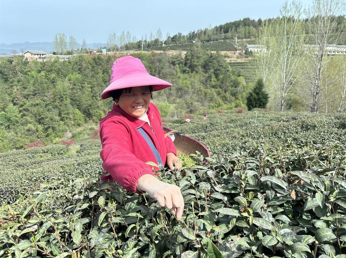 “拇指捏茎,提手轻采,芽叶匀净不伤根!”茶园深处,郧西县农技专家秦光良在茶园里悉心指导着。安家乡茶农殷耀云指尖灵巧舞动,竹篓渐满,“单芽收购价80元一斤,家门口采茶两个月,收入顶得上过去半年了!”