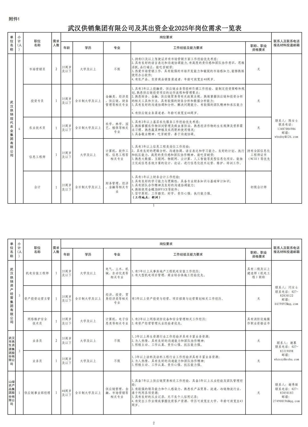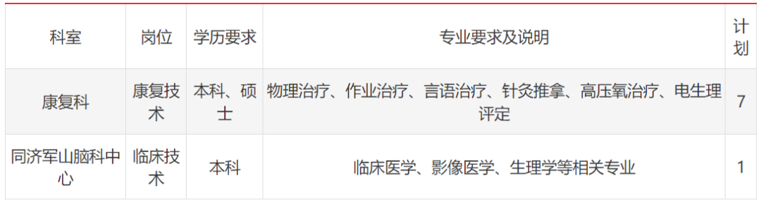 部分岗位招聘计划