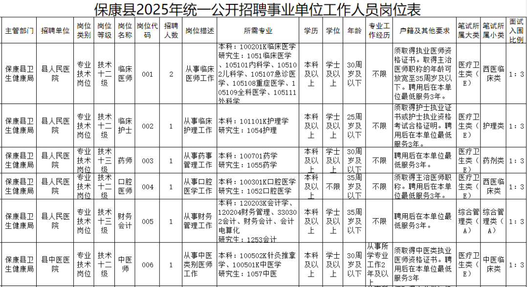 职业卫生科技师2人、体检中心市场开拓员2人、门诊收费员2人