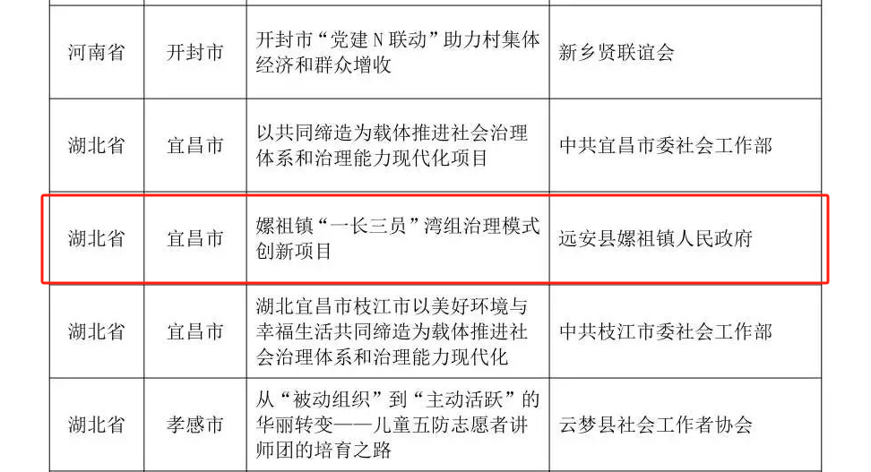 嫘祖镇“一长三员”湾组治理模式创新项目入选全国社会治理创新案例