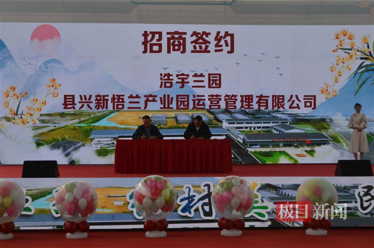 以兰招商,共建支点。活动中,大悟县政府举行招商推介会,乡巴克(武汉)数字文化有限公司与河口镇人民政府,浩宇兰园与县兴新悟兰产业园运营管理有限公司2个项目现场签约,向付喜山等25名直播达人颁发“兴新能源杯”我为大别山兰花和大悟茶带好货电商直播大赛获奖证书。