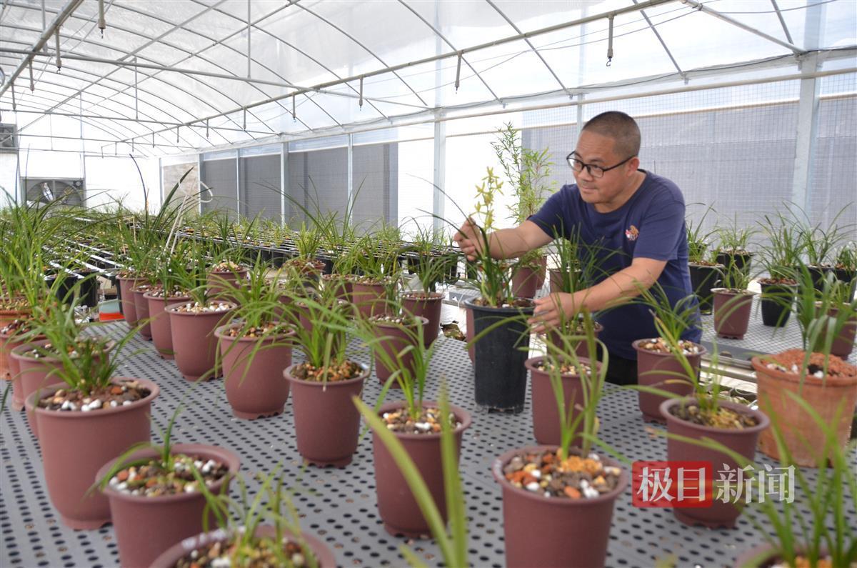 兰花种植大户周平原,已经种植兰花20余年,2024年底从随州广水入驻大别山(大悟)兰花产业园,目前,已拥有448平方米的两个种植大棚,种有3000余盆蕙兰等100余种兰花,女儿周可可大学毕业来到园区,女儿网上直播讲解兰花种植技术和兰花知识,父亲负责种植和线下销售,父女二人协调配合,每个月销售兰花超20万元,“一朵花”带富了一方人。