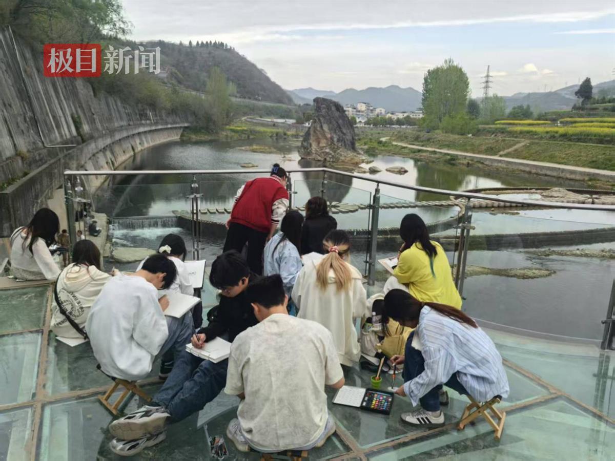 实习期间,学生们以“行走的课堂”沉浸式感知郧西的发展脉搏。在革命烈士纪念馆感悟红色文化,在文旅融合示范区写生创作,在乡村振兴示范点对话非遗传承人。学生代表李阳完成《天河画廊》系列作品后感慨:“郧西的生态资源和文化底蕴为创作注入灵感,更让我们对县域产业升级有了直观认知。”首批实训累计产出写生作品700余幅,部分作品将用于郧西文旅宣传展出。