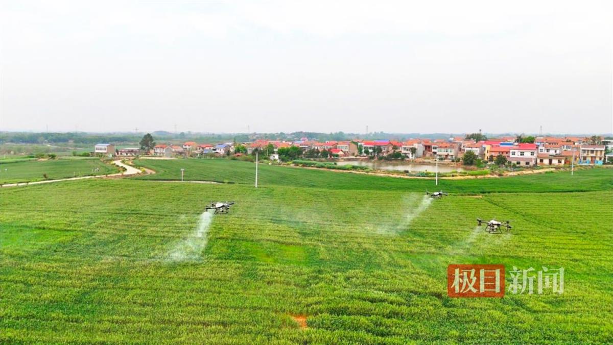 4月10日,在湖北省孝感市孝南区杨店镇回春村连片起伏的麦浪中,一场农业现代化的“硬核秀”正在上演。